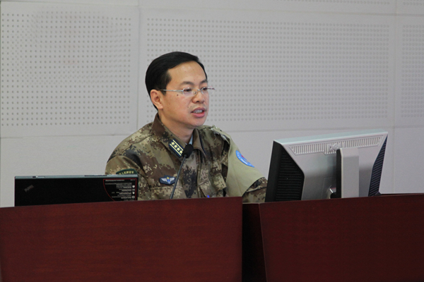 張國春在作關于兵棋系統(tǒng)改進的報告(資料照片)。 新華社發(fā)(楊俊光 攝)
