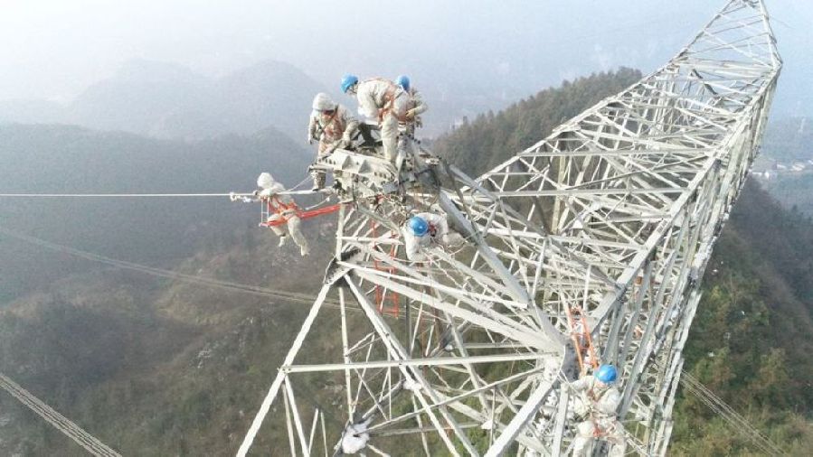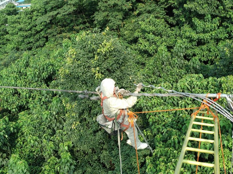 第一次爬塔時(shí),田貴陽(yáng)心里直打怵?!坝?xùn)練的時(shí)候,師傅教我們不要往下看,往上看,看著腳釘往上爬。”現(xiàn)在,工作12年的他早已輕車熟路,120米高的過(guò)江塔,蹭蹭蹭六七分鐘就爬了上去。而上了塔工作才剛開始,要是碰上任務(wù)多,在半空一待就得五六個(gè)小時(shí)。