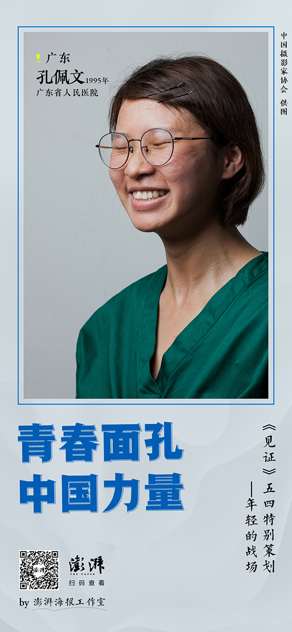 青春由磨礪而出彩,人生因奮斗而升華。在此次抗擊新冠肺炎疫情的戰(zhàn)役中,有1.2萬多名90后青年醫(yī)護人員義無反顧踏上援鄂戰(zhàn)場。在五四青年節(jié)到來之際,澎湃新聞從中國攝影家協(xié)會主席李舸帶領(lǐng)團隊為支援湖北的4.2萬多名醫(yī)護人員拍攝的《見證》國家影像文獻檔案中,特別呈現(xiàn)30張青春面孔,以展現(xiàn)當(dāng)代中國青年的擔(dān)當(dāng)精神,見證中國力量!