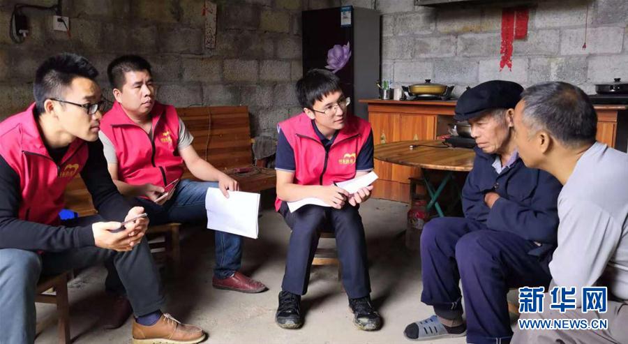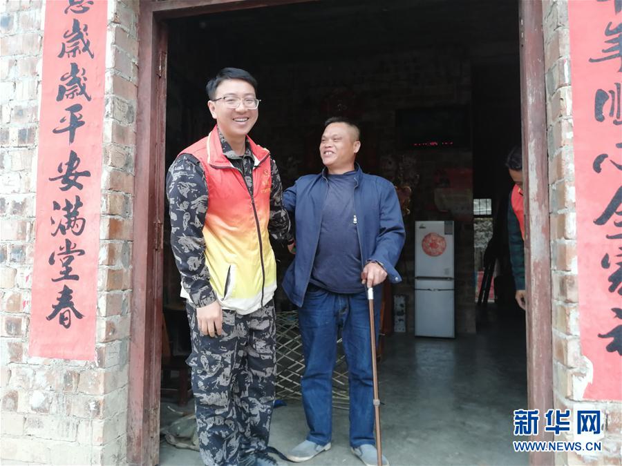 廣西田東縣作登瑤族鄉(xiāng)隴那村駐村第一書記李宇翔(左三)在走訪貧困戶(資料照片)。 新華社發(fā)