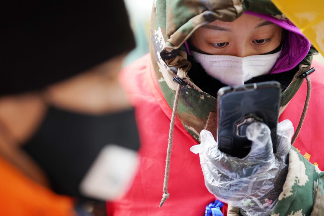 1993年出生的李文琦,是在深圳工作的哈爾濱人,春節(jié)返鄉(xiāng)回哈后成為社區(qū)志愿者。她說:“國家有難,我們‘90后’正值青年,身強(qiáng)力壯,應(yīng)該往前沖?!眻D為李文琦(右)在檢查往來車輛人員的手續(xù)證明。新華社記者 王建威/攝