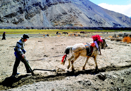 高山厚土壓縮了空間,但拉長了時間。比起地處平原的拉薩等地,這里的春耕整整晚了兩個月。