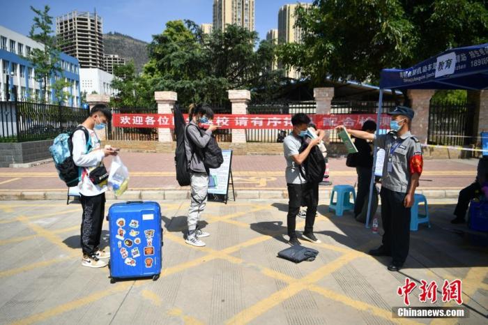 資料圖:5月11日,云南一高校返校學(xué)生間隔排隊(duì)、掃碼進(jìn)校園。記者 劉冉陽(yáng) 攝