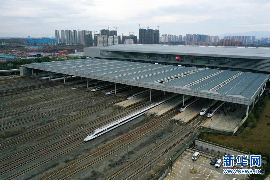 2019年12月26日,昌贛高鐵開(kāi)通運(yùn)營(yíng)首日開(kāi)出的首趟列車(chē)G5025次正從南昌西站駛出。新華社記者 彭昭之 攝
