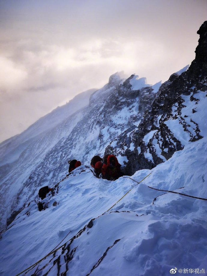2020珠峰高程測量登山隊(duì)隊(duì)員正在通過8800米橫切-新華網(wǎng)