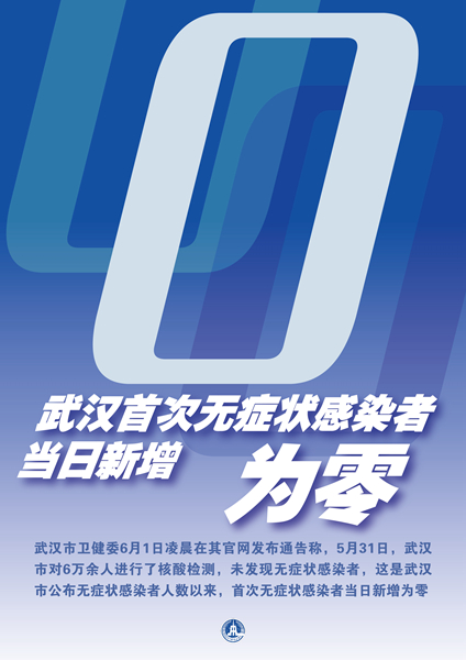 新華社武漢6月1日電 武漢市衛(wèi)健委6月1日凌晨在其官網(wǎng)發(fā)布通告稱,5月31日,武漢市對(duì)6萬(wàn)余人進(jìn)行了核酸檢測(cè),未發(fā)現(xiàn)無(wú)癥狀感染者,這是武漢市公布無(wú)癥狀感染者人數(shù)以來(lái),首次無(wú)癥狀感染者當(dāng)日新增為零。