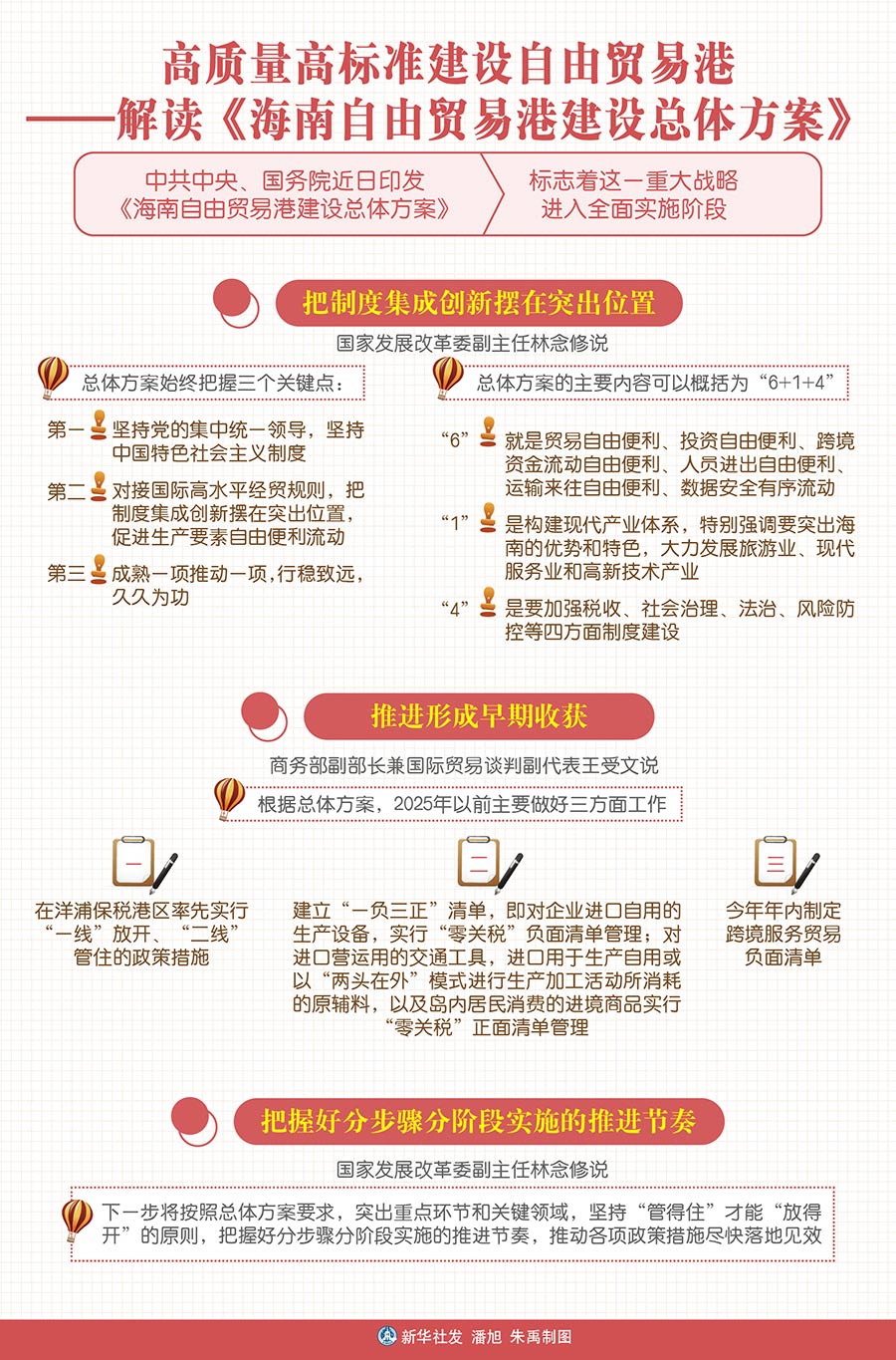 “總體方案始終把握三個關鍵點:第一,堅持黨的集中統(tǒng)一領導,堅持中國特色社會主義制度;第二,對接國際高水平經(jīng)貿(mào)規(guī)則,把制度集成創(chuàng)新擺在突出位置,促進生產(chǎn)要素自由便利流動;第三,成熟一項推動一項,行穩(wěn)致遠,久久為功?!眹野l(fā)展改革委副主任林念修說。