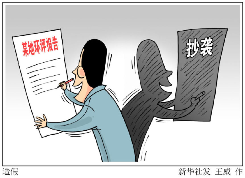 前一段時(shí)間,某地環(huán)評(píng)報(bào)告抄襲“做樣子”引發(fā)關(guān)注。類似情況是個(gè)案,還是有一定普遍性?半月談?dòng)浾咴诙嗟卣{(diào)研發(fā)現(xiàn),當(dāng)前環(huán)評(píng)行業(yè)魚龍混雜,亂象不少。環(huán)評(píng)報(bào)告書有模板,不同項(xiàng)目之間可套用,有的環(huán)評(píng)機(jī)構(gòu)憑過(guò)往經(jīng)驗(yàn)推測(cè)或主觀臆斷,替換模板中的關(guān)鍵參數(shù)和結(jié)論,一份新的環(huán)評(píng)報(bào)告就出來(lái)了。