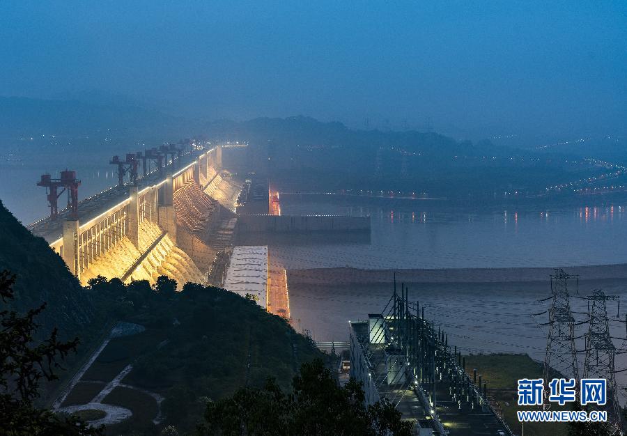 6月8日拍攝的三峽大壩泄洪閘夜景。 6月8日17時(shí),三峽水庫(kù)水位消落至144.99米,提前兩天完成消落任務(wù)。據(jù)長(zhǎng)江水利委員會(huì)介紹,三峽水庫(kù)本輪消落自2019年12月開始,水位自正常蓄水位175米左右消落至汛限水位145米,共消落水位約30米,騰出防洪庫(kù)容221.5億立方米,為迎戰(zhàn)長(zhǎng)江流域可能發(fā)生的洪水提供安全保障。 新華社發(fā)(向紅梅 攝)