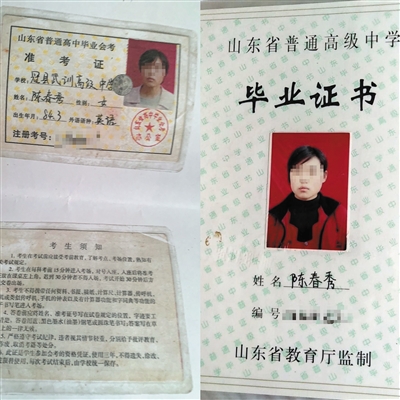 5月26日,山東理工大學(xué)招生處工作人員向陳春秀證實(shí),她的學(xué)籍被同縣考生陳雙雙頂替使用。