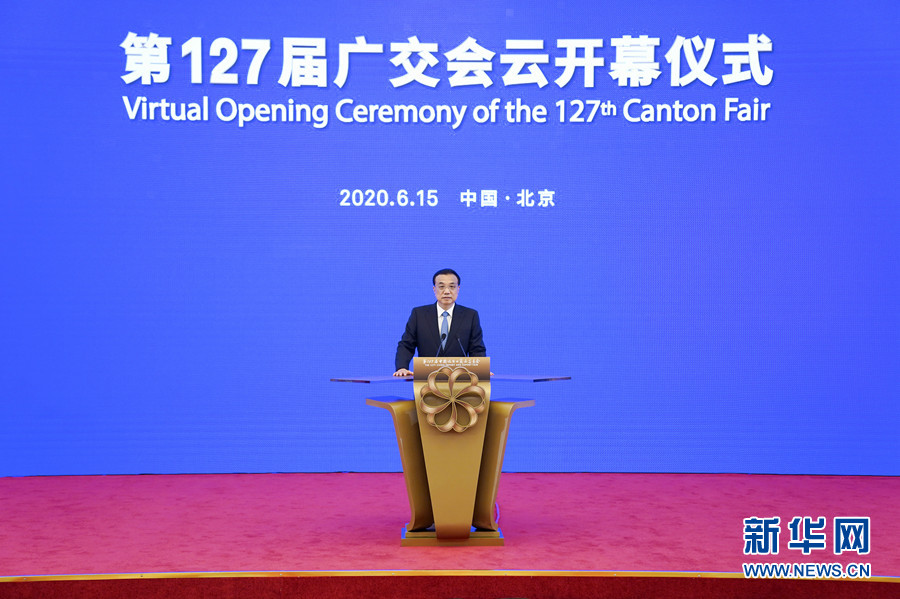 6月15日,中共中央政治局常委、國務院總理李克強在北京出席第127屆廣交會“云開幕”儀式。 新華社記者 張領 攝