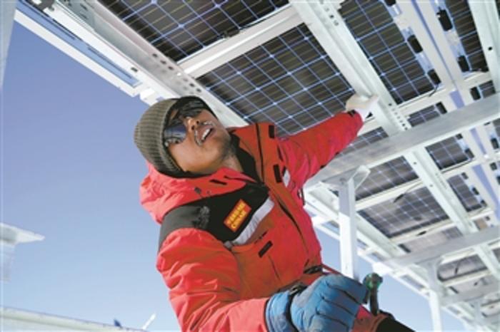曾應(yīng)根為泰山站新能源系統(tǒng)安裝光伏太陽能板。受訪者供圖