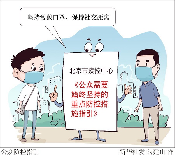 新華社北京6月27日電(記者俠克)北京市疾控中心日前發(fā)布《公眾需要始終堅持的重點防控措施指引》,提示應堅持常戴口罩,保持社交距離,保持手衛(wèi)生,配合做好健康監(jiān)測,做好飲食衛(wèi)生,做好日常清潔和消毒。