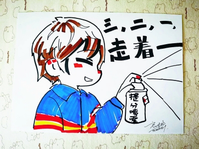 高二時,這一傳統(tǒng)得以延續(xù)。今年,從給學(xué)長們吶喊加油,輪到了為自己和同學(xué)們鼓勁打氣。在漫畫的創(chuàng)作風(fēng)格上,張亦萱也做了調(diào)整?!爸皭坌牡脑貢嘁恍衲陼顫娨恍?,希望能讓人看了更輕松?!睆堃噍嬲f,自己從小學(xué)開始學(xué)美術(shù),對她來說,畫畫不難,難的是創(chuàng)意和構(gòu)思。最開始畫的時候,想法很多,從網(wǎng)上獲得了不少靈感;后來,為了不跟別人重復(fù),她開始翻各種表情包,力求好玩兒有趣。
