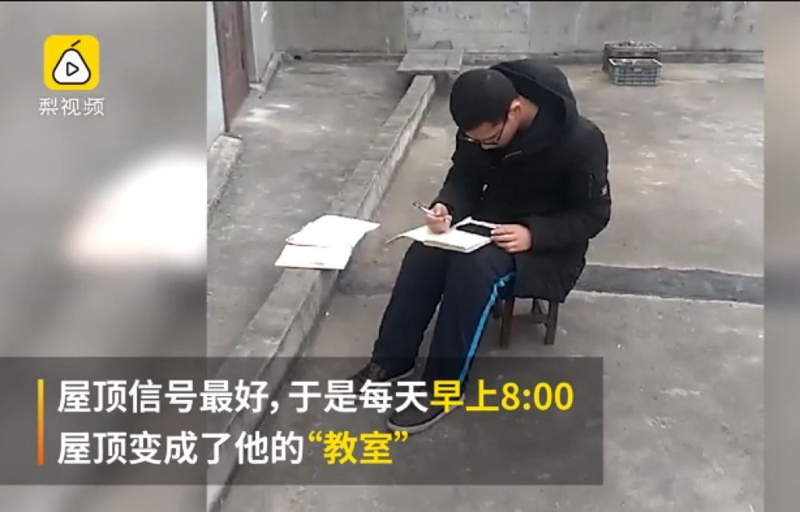 特殊時(shí)期,學(xué)校選擇了網(wǎng)上開課。小通因家中沒有WiFi,又舍不得用流量,就向鄰居求助,蹭隔壁家的WIFI。屋頂信號(hào)最好,于是才有了“學(xué)霸上屋頂”的勵(lì)志一幕。