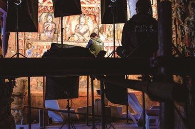 浙大數(shù)字化團隊在云岡12窟前室進行數(shù)字化信息采集