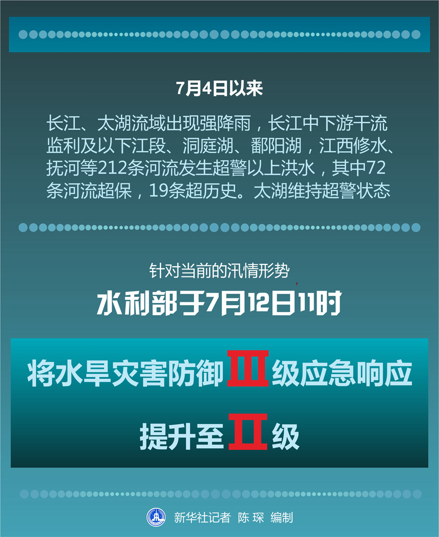 水利部有關(guān)負(fù)責(zé)人說,應(yīng)急響應(yīng)級(jí)別提升后,水利部將進(jìn)一步加密水情監(jiān)測(cè)和滾動(dòng)預(yù)報(bào)頻次,每天不定期進(jìn)行會(huì)商研判,加大對(duì)長江、太湖流域的防汛指導(dǎo)力度。