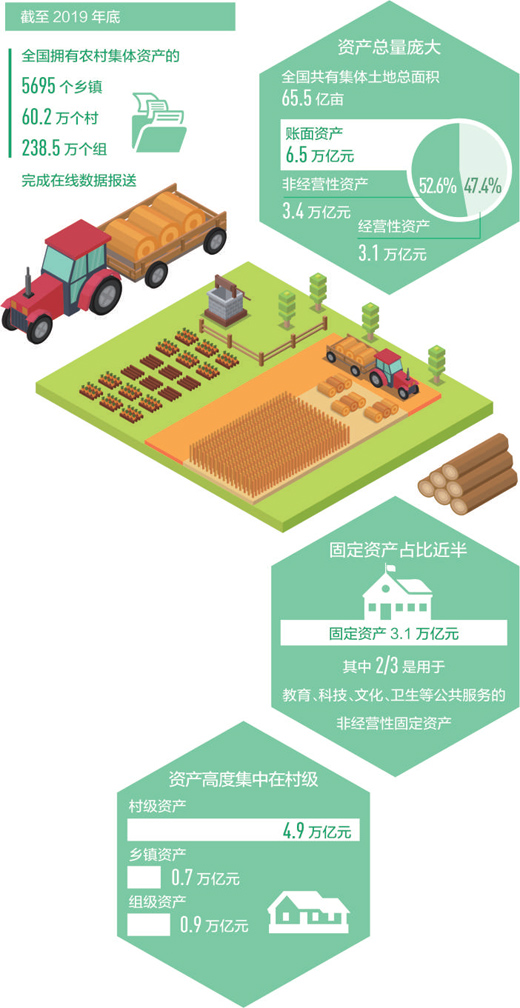 全國(guó)農(nóng)村集體家底目前已基本摸清。據(jù)統(tǒng)計(jì),全國(guó)共有集體土地總面積65.5億畝,賬面資產(chǎn)6.5萬(wàn)億元。清產(chǎn)核資反映出我國(guó)農(nóng)村集體資產(chǎn)的基本面貌,為進(jìn)一步開(kāi)展管理和運(yùn)營(yíng)提供了重要依據(jù)。