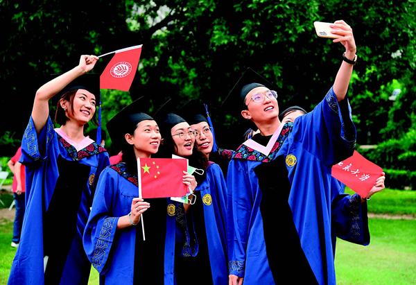 7月2日,北京大學(xué)2020屆畢業(yè)生在畢業(yè)典禮結(jié)束后拍照留念 任超攝/本刊