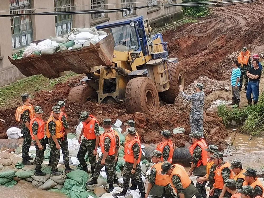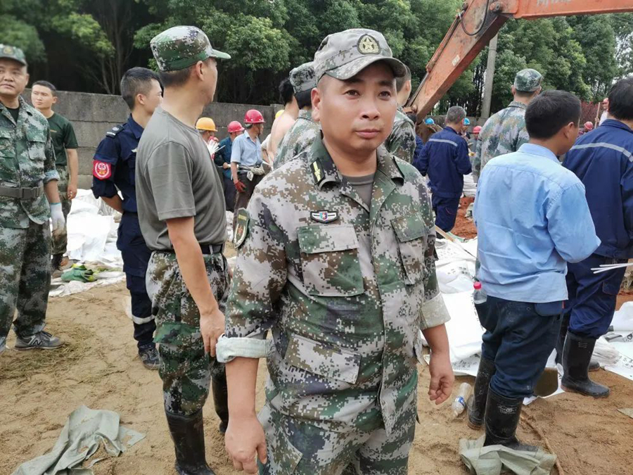 當?shù)負岆U人員、武警安徽總隊池州支隊140名武警官兵第一時間趕赴現(xiàn)場,東至縣人武部同時組織90名地方民兵緊急支援,陳壽春位列“前鋒”。