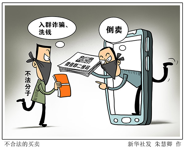 “新華視點(diǎn)”記者調(diào)查發(fā)現(xiàn),微信群的二維碼在網(wǎng)絡(luò)上被倒賣,一些不法分子借此實(shí)施詐騙或洗錢。