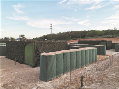 快裝式野營支援保障系統(tǒng)具有質(zhì)量輕便、結(jié)構(gòu)簡(jiǎn)單、開設(shè)迅速等特點(diǎn),主要用于缺乏既有營房依托的大規(guī)模、基地化野營支援保障行動(dòng);發(fā)揮集裝箱、鋼結(jié)構(gòu)等裝配式建筑成熟工業(yè)化體系產(chǎn)品優(yōu)勢(shì),以及充氣帳篷快速搭建的特點(diǎn),集成指揮、住宿、會(huì)議、倉儲(chǔ)、就餐、衛(wèi)浴、空調(diào)等功能模塊,根據(jù)部隊(duì)不同兵力規(guī)模和保障需求靈活插接選用;可短時(shí)間內(nèi)快速完成野戰(zhàn)營地開設(shè),一套系統(tǒng)能夠?yàn)橐粋€(gè)營規(guī)模部隊(duì)提供一體化野戰(zhàn)宿營支援保障。