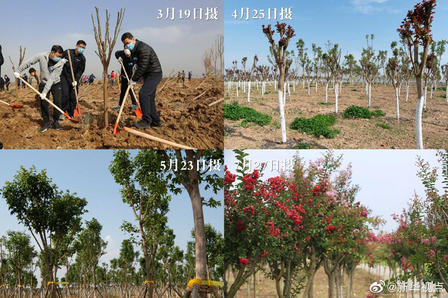 四個(gè)多月前的3月19日,遼寧、寧夏、福建援襄醫(yī)療隊(duì)代表來到魚梁洲參加援襄醫(yī)療隊(duì)紀(jì)念林植樹活動(dòng)。紀(jì)念林面積22.5畝,設(shè)計(jì)為愛心形狀,共2020棵。如今,這片“愛心林”已開花變紅,成為襄陽(yáng)市一道風(fēng)景。(記者 謝劍飛,報(bào)道員 楊東)