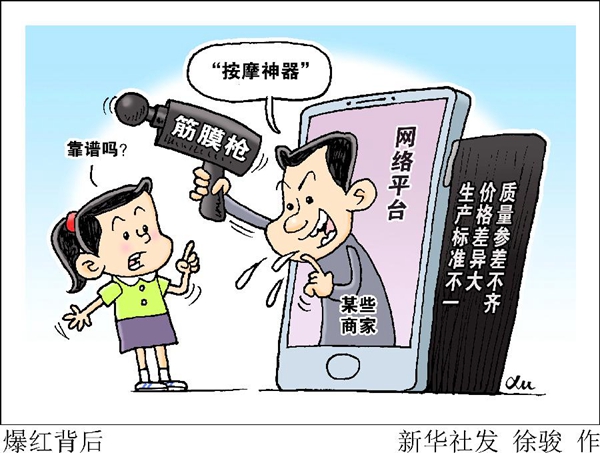 筋膜槍似乎“一夜”出圈成為網(wǎng)紅產(chǎn)品。今年“6.18”網(wǎng)絡購物平臺活動首日,某品牌筋膜槍開售1小時即突破百萬元銷售額。在某直播平臺,一位網(wǎng)絡達人首次帶貨就售出5000多件,累計銷售額近500萬元。還有明星在視頻平臺推廣,1萬余件產(chǎn)品幾乎“秒搶”。