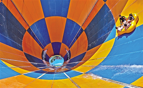 日前,游客在山東煙臺37度夢幻海水樂園體驗“深海龍卷風(fēng)”游樂項目。孫文潭攝(中經(jīng)視覺)