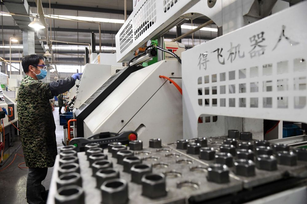 3月5日,在江西省宜春市一家企業(yè)車間內,工人在半自動化生產(chǎn)線上工作。各地工業(yè)企業(yè)在做好疫情防控的同時積極復工復產(chǎn)。新華社發(fā)(周亮 攝)