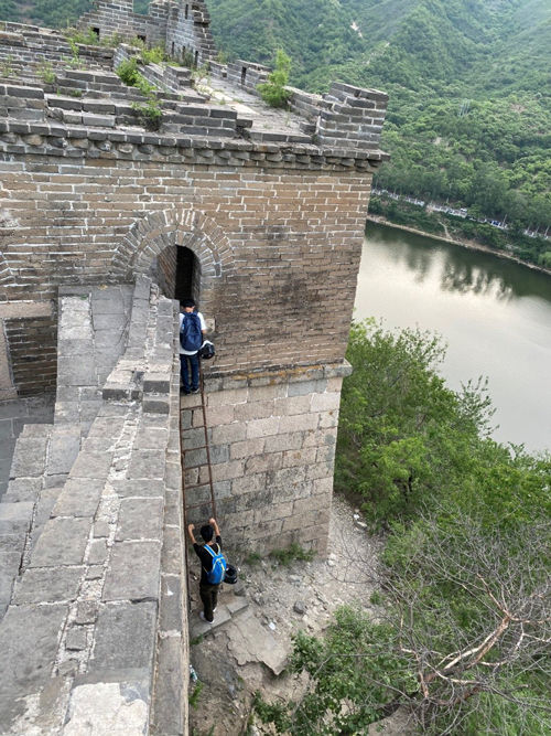 他說,登野長(zhǎng)城是不允許的,近年來,北京市文物局也加大了巡查力度,設(shè)置了一些負(fù)責(zé)長(zhǎng)城環(huán)保的公益志愿者和長(zhǎng)城保護(hù)工作人員巡山。如果被發(fā)現(xiàn),梯子肯定要被鄉(xiāng)鎮(zhèn)沒收。據(jù)稱,登城所用的梯子就被鄉(xiāng)鎮(zhèn)沒收了3次。為保險(xiǎn)起見,他會(huì)早晨放梯,晚上再撤掉。