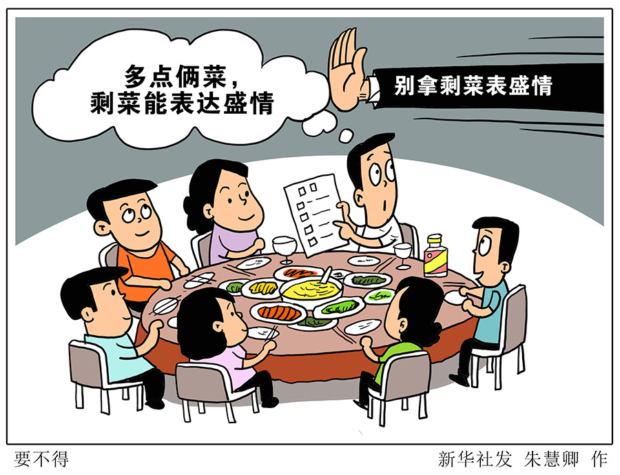 無(wú)論是家人聚會(huì)、朋友小酌,還是商務(wù)活動(dòng),請(qǐng)客吃飯?jiān)谒y免,若以菜數(shù)衡量誠(chéng)意,將剩菜剩飯等同于待客的盛情美意,這種做法不能提倡,浪費(fèi)行為要堅(jiān)決制止。盛情待客的表達(dá)方式要與時(shí)俱進(jìn)、破舊立新?!捌骶哔|(zhì)而潔,瓦缶勝金玉;飲食約而精,園蔬逾珍饈”,如果必須要以食物做媒,不如在吃得舒心上下功夫,比如點(diǎn)菜更開放自主,吃得更健康精致,用餐環(huán)境更舒適貼心。