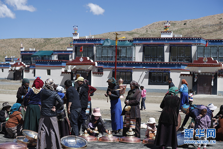 白瑪?shù)膵寢尪松纤钟筒瑁贿吅戎钟筒?,一邊和我聊起新房的事情。白瑪?shù)膵寢屨f,以前住在山頂上,房屋密集、布局混亂,排水系統(tǒng)落后。新村建成后,她們就搬了下來,村里配套設(shè)施齊全,房子住起來也舒適。