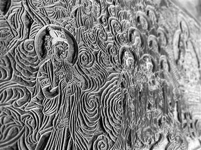 隨著白富鋼的五指輕盈地在古老的木板上游走,一塊木質(zhì)經(jīng)板上縱橫的紋理逐漸明晰起來。這批經(jīng)板始刻于清雍正十一年(公元1733年),完成于清乾隆三年(公元1738年),是我國漢文大藏經(jīng)卷帙中收錄最豐富,也是最后一部官方雕印本。經(jīng)板共計79036塊,總重達(dá)400噸。堪稱我國木板經(jīng)書之最。
