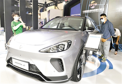 9月5日,觀眾在服貿(mào)會(huì)5G通信服務(wù)專(zhuān)題展區(qū)參觀一款5G智能汽車(chē)。記者 張晨霖 攝