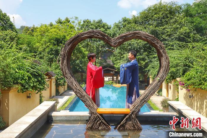 資料圖: 穿漢服的夫妻游客在惠州龍門地派溫泉留影 李星凱 攝