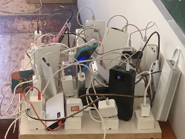 每間教室的講臺(tái)旁邊都放著一排插線板,上面插滿了充電寶。據(jù)學(xué)生介紹,學(xué)校封禁了宿舍內(nèi)的插電孔,他們只能將充電寶在教室充滿電后帶回宿舍用?!坝袝r(shí)候教室里充電的地方滿了,要么排隊(duì),要么去超市花錢充。”由于宿舍沒插電孔、沒網(wǎng),這里的大學(xué)生幾乎沒人用電腦。小許說,學(xué)校說宿舍不能充電是為了防火安全,但是如此管理未免太過“簡單粗暴”。