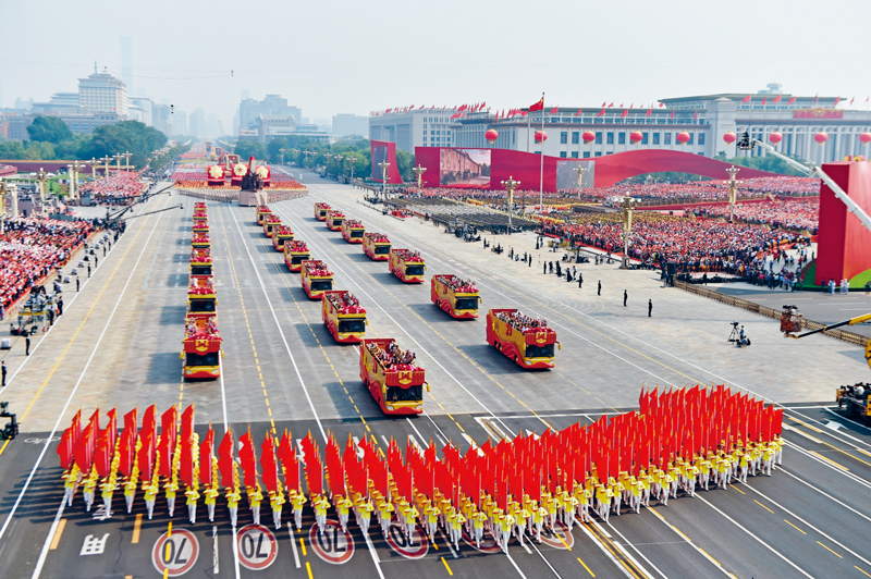 70年來,在中國共產(chǎn)黨堅(jiān)強(qiáng)領(lǐng)導(dǎo)下,中國人民勇于探索、不斷實(shí)踐,成功開辟了中國特色社會(huì)主義道路,推動(dòng)中國特色社會(huì)主義進(jìn)入新時(shí)代,中國大踏步趕上了時(shí)代,中國人民意氣風(fēng)發(fā)走在了時(shí)代前列!