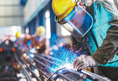 江蘇無(wú)錫的蘇錫常太湖隧道鋼筋加工車間,工人在焊接鋼筋籠。蔡朝陽(yáng)攝(人民視覺(jué))