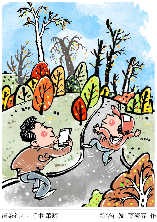 羅澍偉說,從“寒露”至“霜降”,北方霜染紅葉,南方蟬噤荷殘,秋色斑斕,美不勝收;廣大農(nóng)村則進(jìn)入秋熟作物收割、越冬作物播種的大忙季節(jié),石榴、山楂、柿子等果子成熟,掛滿枝頭,累累碩果惹人醉。