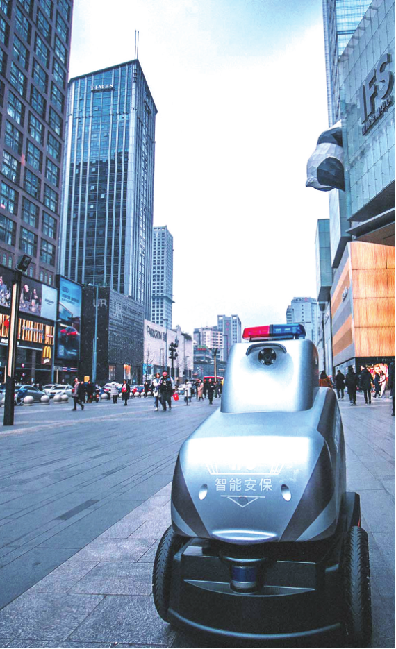 2019 年 1 月 10 日,在成都 IFS 廣場上,一個移動機(jī)器人在廣場上巡邏,遇見前方有行人便會主動避讓,尋找新的巡邏線路