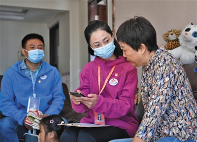 “您好,我們是奧運(yùn)村街道國(guó)奧村社區(qū)第七次全國(guó)人口普查指導(dǎo)員杜慧婧和普查員婁洪勇,這是我們的工作證?!?0月17日上午,在國(guó)奧村社區(qū)一戶居民家門(mén)口,普查員用標(biāo)準(zhǔn)的“七人普”開(kāi)場(chǎng)白“敲”開(kāi)了住戶的家門(mén)。