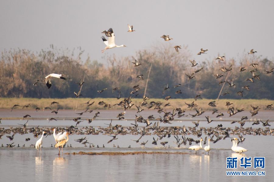 越冬候鳥(niǎo)棲息在鄱陽(yáng)湖濕地水域(11月5日攝)。新華社記者 彭昭之 攝