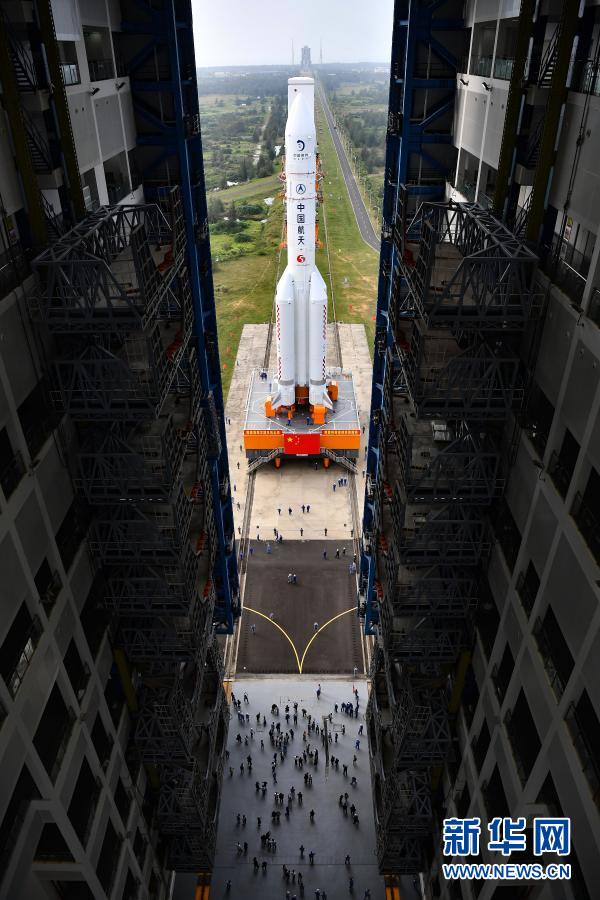 新華社海南文昌11月17日電(記者胡喆、陳凱姿)記者從國家航天局獲悉,11月17日,長征五號遙五運載火箭和嫦娥五號探測器在中國文昌航天發(fā)射場完成技術區(qū)總裝測試工作后,垂直轉(zhuǎn)運至發(fā)射區(qū),計劃于11月下旬擇機實施發(fā)射。