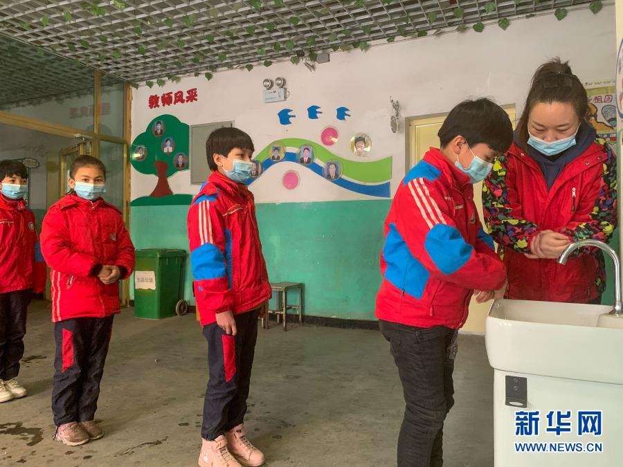 11月19日,在新疆阿克蘇市喀拉塔勒鎮(zhèn)尤喀克博孜其小學,教師耿琴(右一)幫孩子們洗手。新華社發(fā)