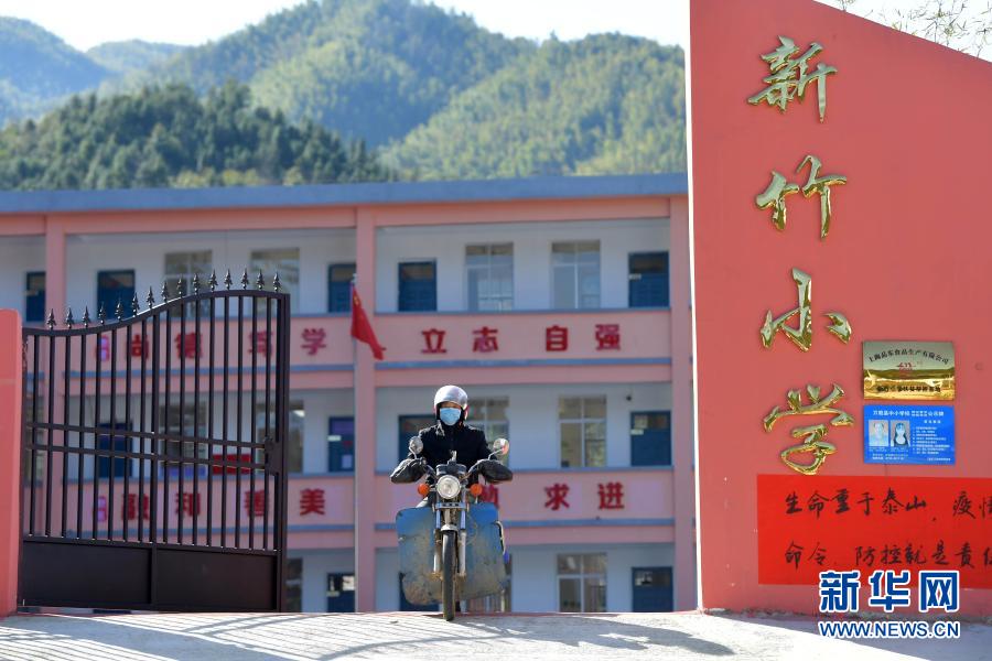 在江西省萬載縣高村鎮(zhèn)新竹村新竹小學,校長羅長石帶著拷貝了當日線上教育課程的U盤和新學期的書本,準備前往住在山里偏遠村組的幾位學生家里(2月17日攝)。新華社記者 彭昭之 攝
