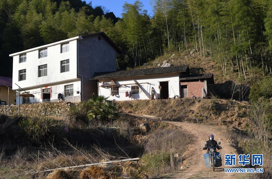 在江西省萬載縣高村鎮(zhèn)新竹村,新竹小學的校長羅長石為學生郭仕錢送完課程之后繼續(xù)趕路,去下一家送課(2月17日攝)。新華社記者 彭昭之 攝
