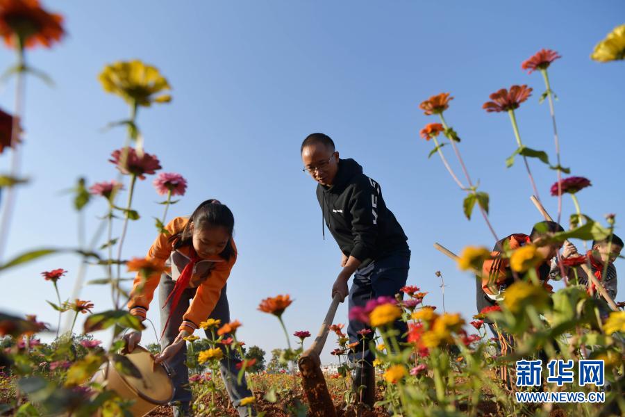 江西省宜春市袁州區(qū)寨下中心小學學生在花田勞動(11月9日攝)。新華社記者 彭昭之 攝
