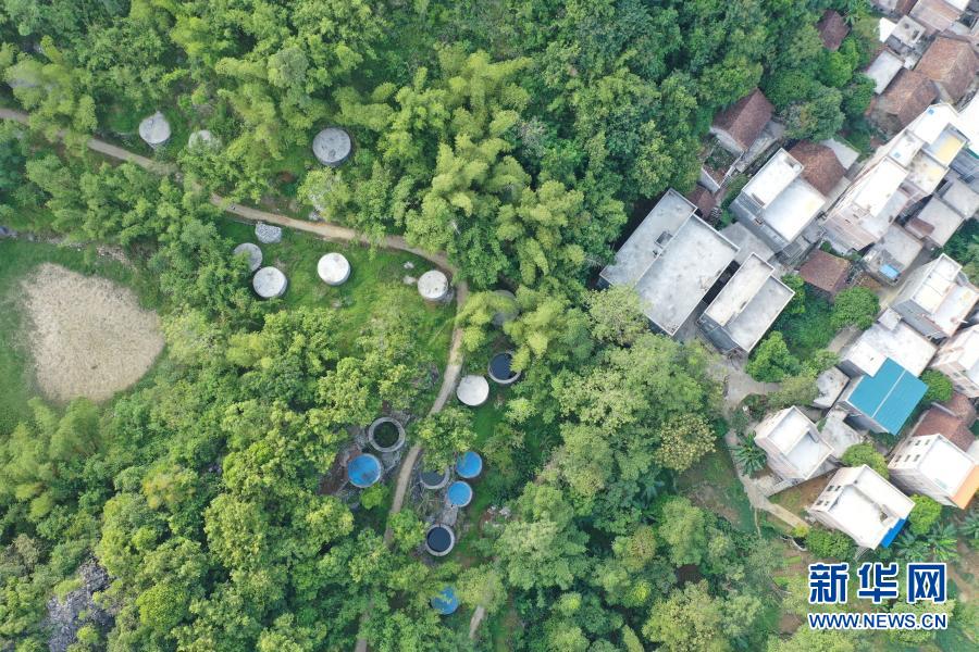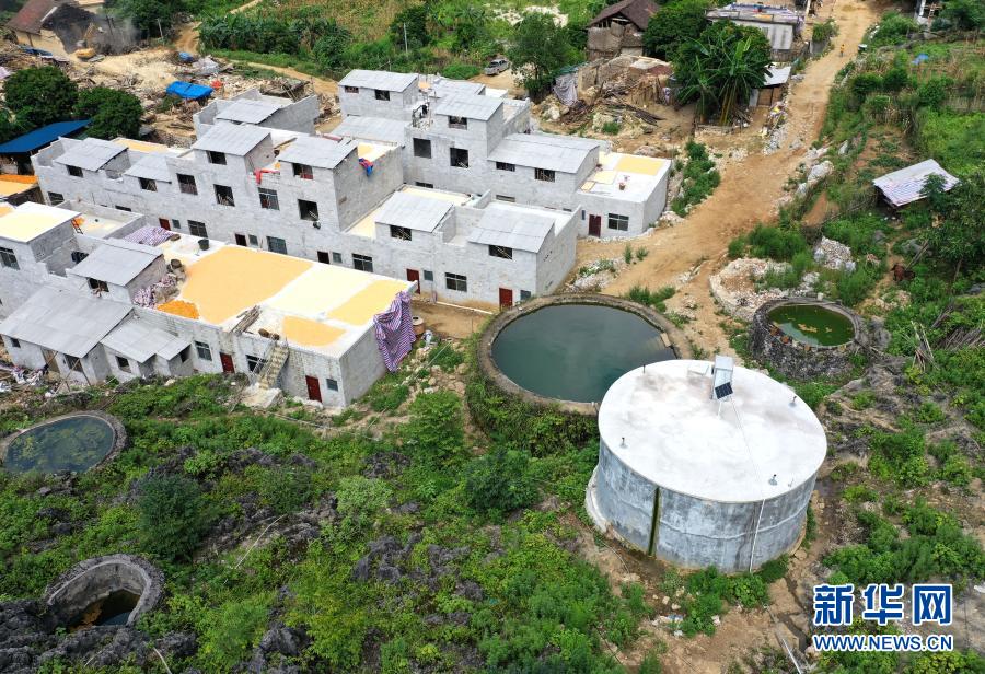 這是7月23日在廣西都安瑤族自治縣三只羊鄉(xiāng)雞峒村拍攝的水柜(無(wú)人機(jī)照片)。利用山石修建的第1代水柜、用水泥砂石修建的第2水柜以及第3代加蓋并配備抽水設(shè)備的水柜,見(jiàn)證了大石山區(qū)村民飲水的變遷。新華社記者 周華 攝
