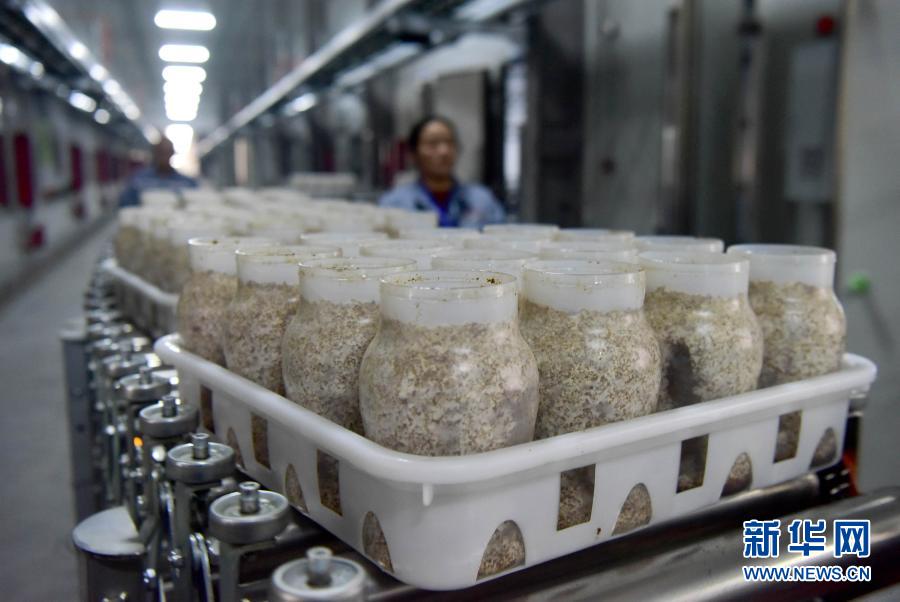 在自動化注射液體菌種后,一排排內(nèi)部裝滿培養(yǎng)基的透明塑料瓶,通過空中傳輸帶,被送進(jìn)能容納5萬瓶的出菇房,經(jīng)自動抬升被整整齊齊地擺進(jìn)10層貨架……這是記者在駐馬店市泌陽縣鮮菇坊生物科技有限公司看到的一幕。